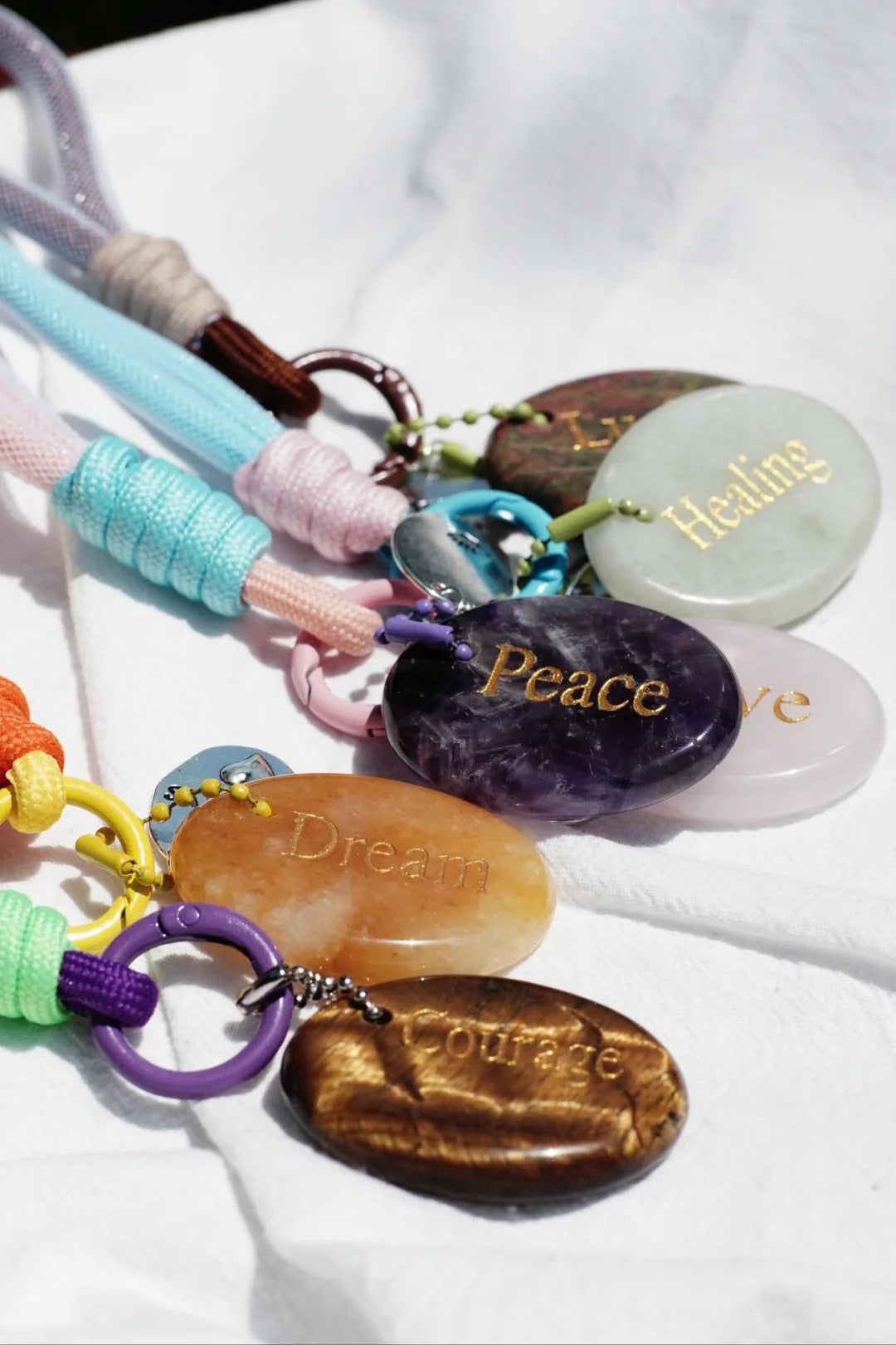 Clip it to your bag, keys, or phone — a soft reminder of love and calm energy that moves with you wherever you go.